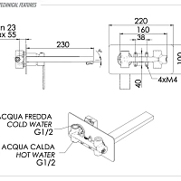 Смеситель для раковины Remer Qubika Q15L. Скрытая часть - в комплекте