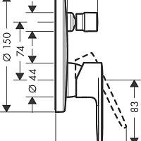 Картридж:керамический/Материал:латунь/Тип подводки:жесткая/Назначение:для ванны/Конструкция излива:без излива/Монтаж:внутренний (скрытый монтаж)/Количество отверстий для монтажа:1/Управление:однорычажный/Цвет:хром/Стилистика дизайна:современный стиль/Возможность подключения фильтра для воды:нет/Термостат:нет/Душевая лейка:нет/Бренд:Hansgrohe/Гарантия:5 лет/Страна:Германия
