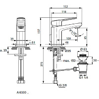 Смеситель Ideal Standard Tonic II A6330AA для раковины, с донным клапаном